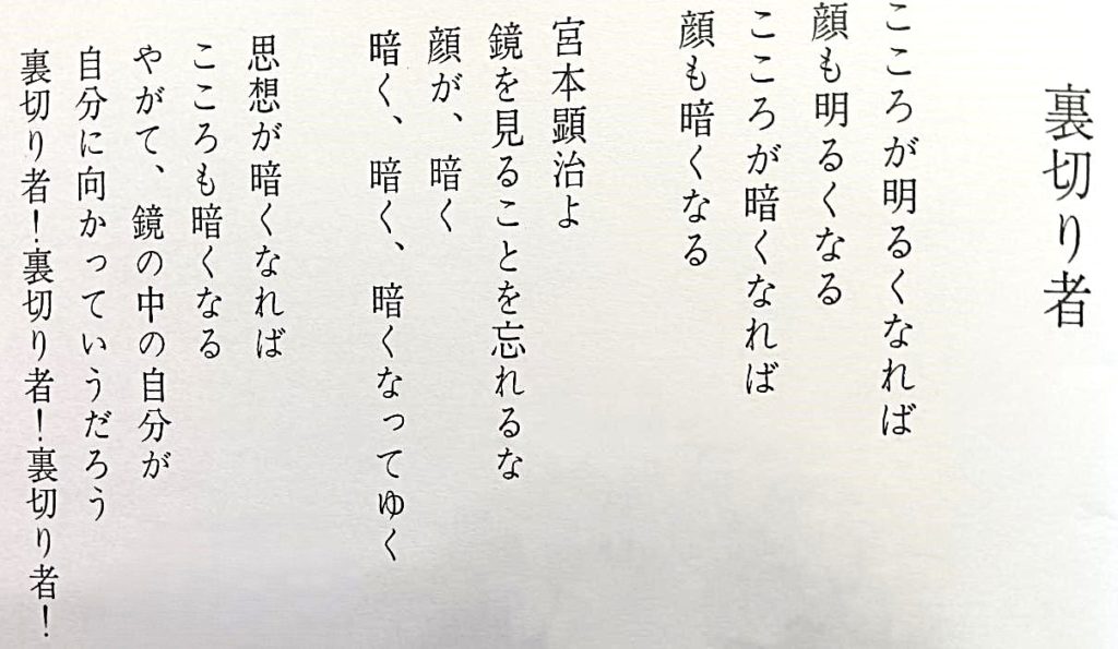で、この『毛沢東思想研究』の2号に発表された詩が、上記の写真の詩「裏切者」です。本文ではなく、裏表紙の裏に印刷されています。知る人ぞ知る、詩人・ぬやま・ひろし=西沢隆二の「代表作」(?)。実際に読んだことのある方は少ないと思うので、下記にあらためて記しておきます。